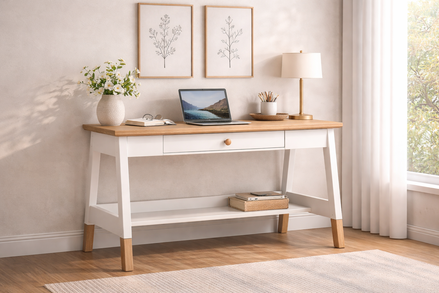 Ce bureau est fabriqué en bois massif de chêne, offrant une construction robuste et durable.