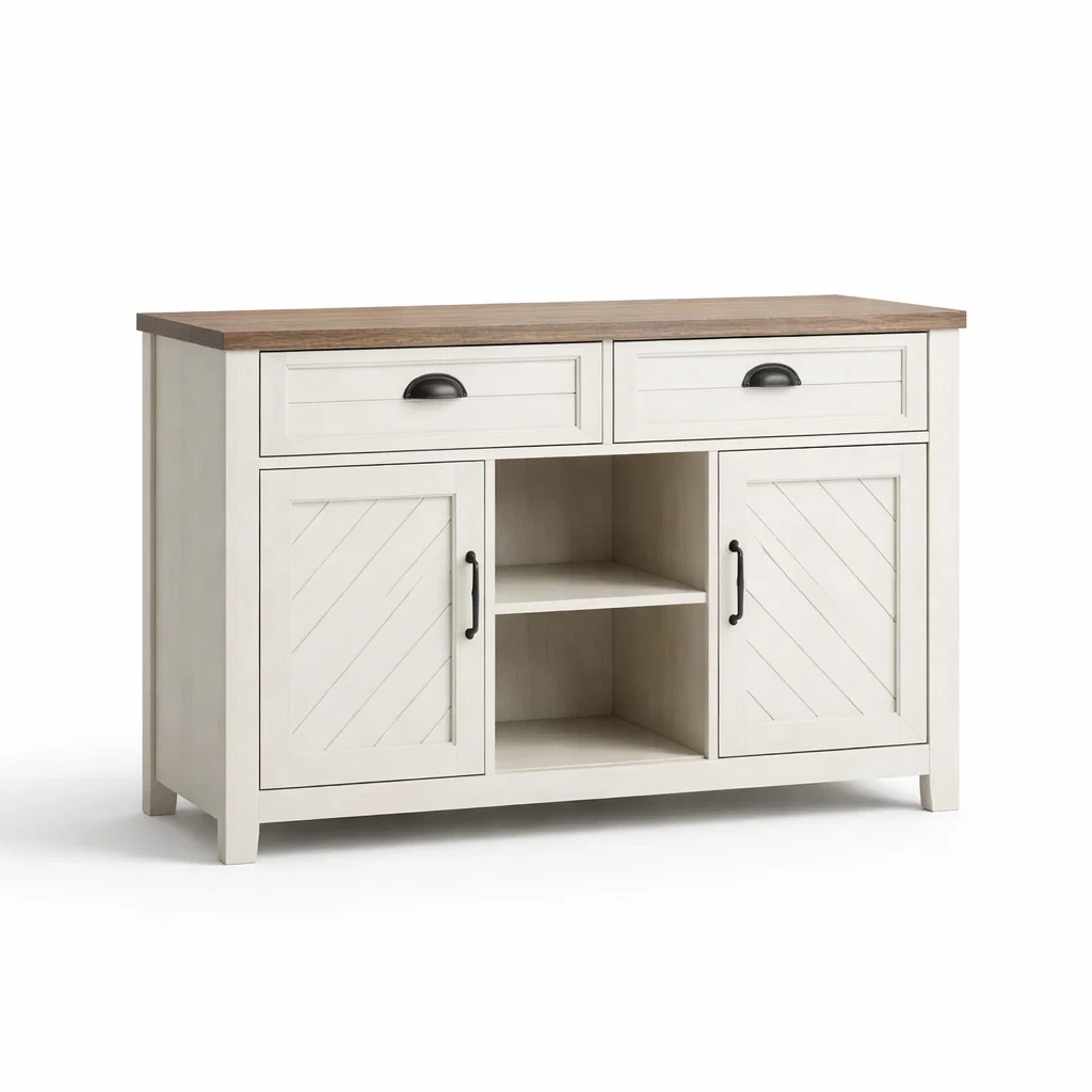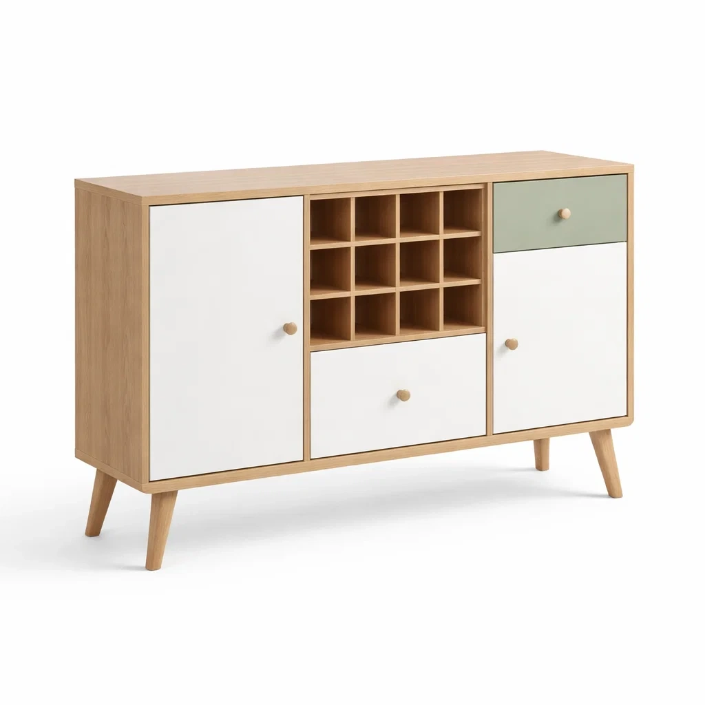 Buffet en bois d ingénierie avec portes blanches et tiroir vert