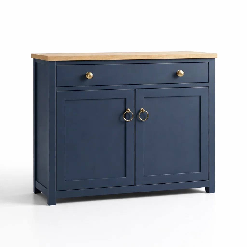 Buffet en bois bleu avec tiroirs et étagère inférieure