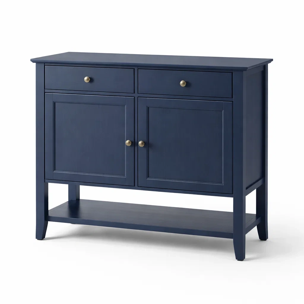 Ce buffet est en bois avec une finition de peinture bleue. Il mesure 100 cm de long, 40 cm de large et 85 cm de haut. Le poids total est de 25 kg.